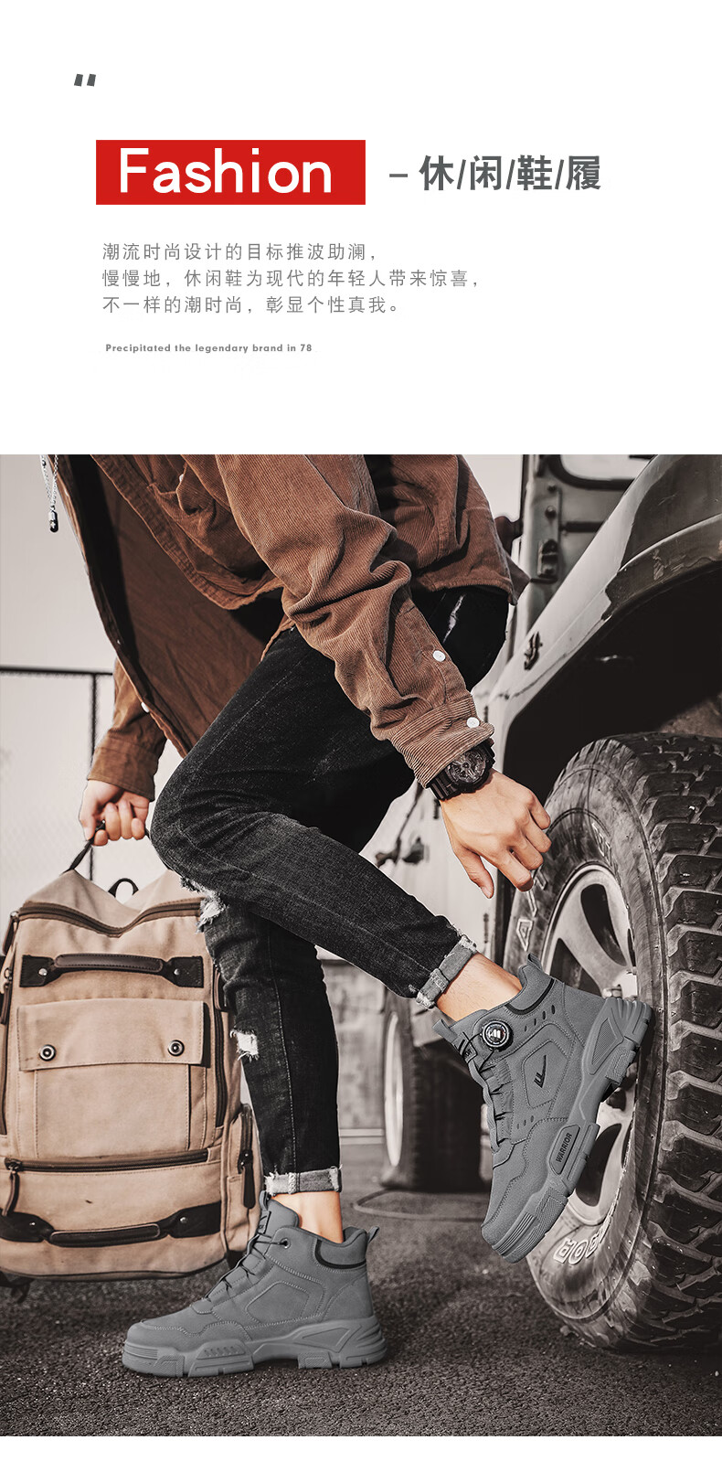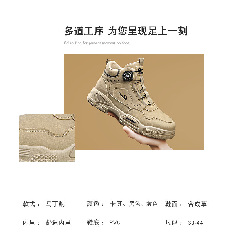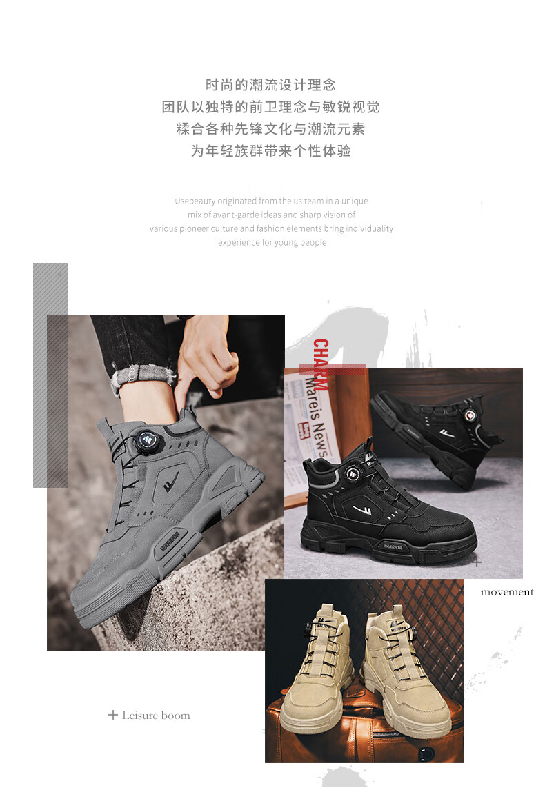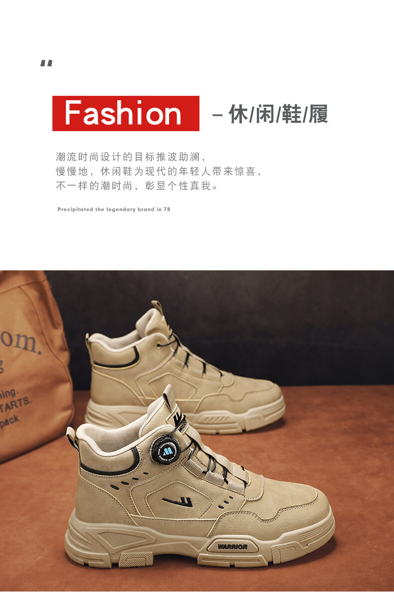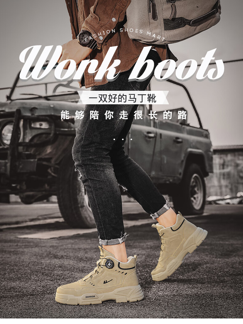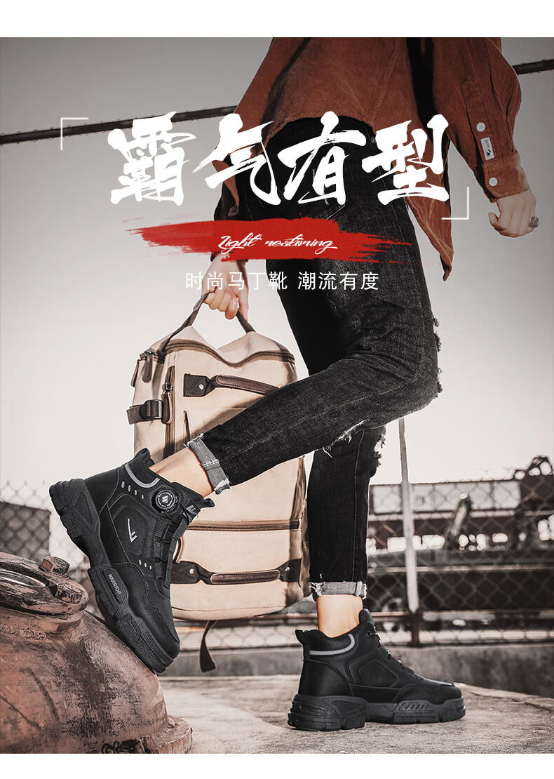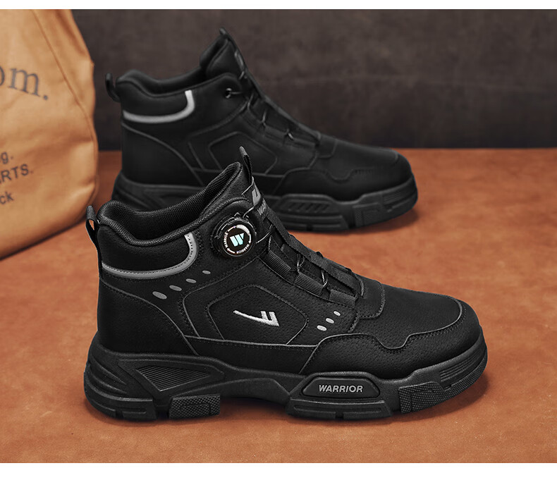 回力男鞋秋冬季新款男士马丁靴复古工装鞋高帮户外登山鞋男款休闲鞋子 黑色 41