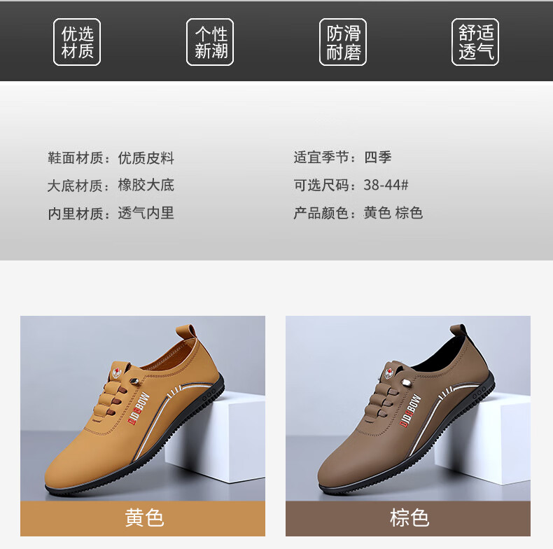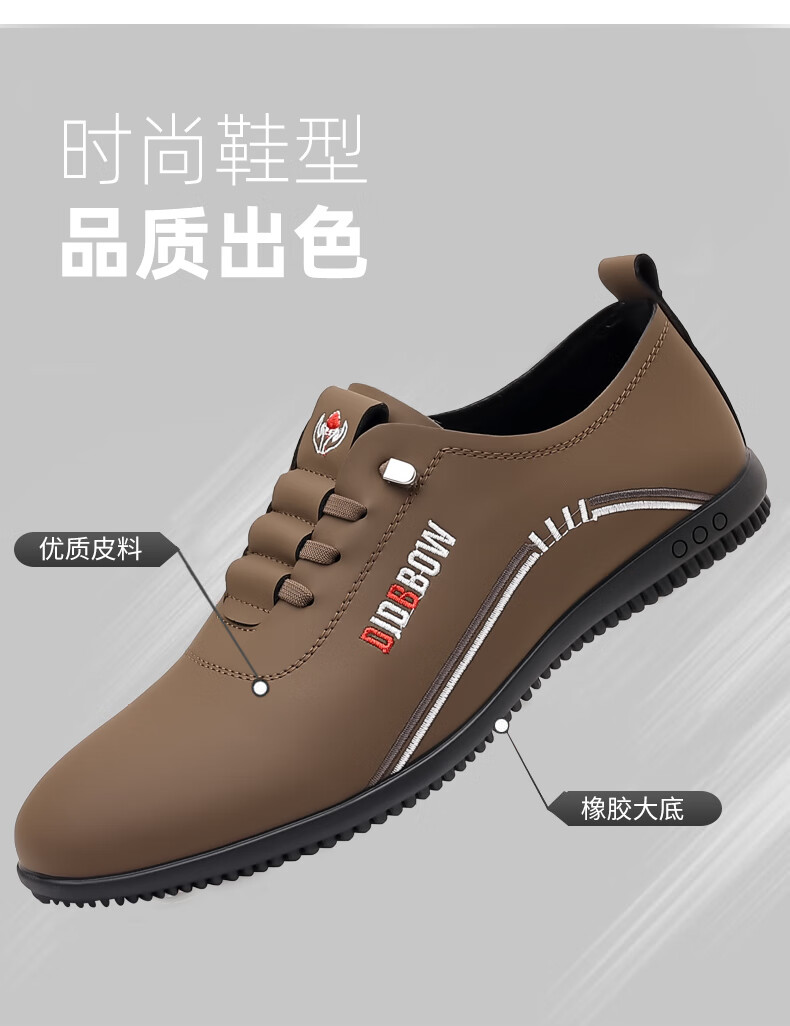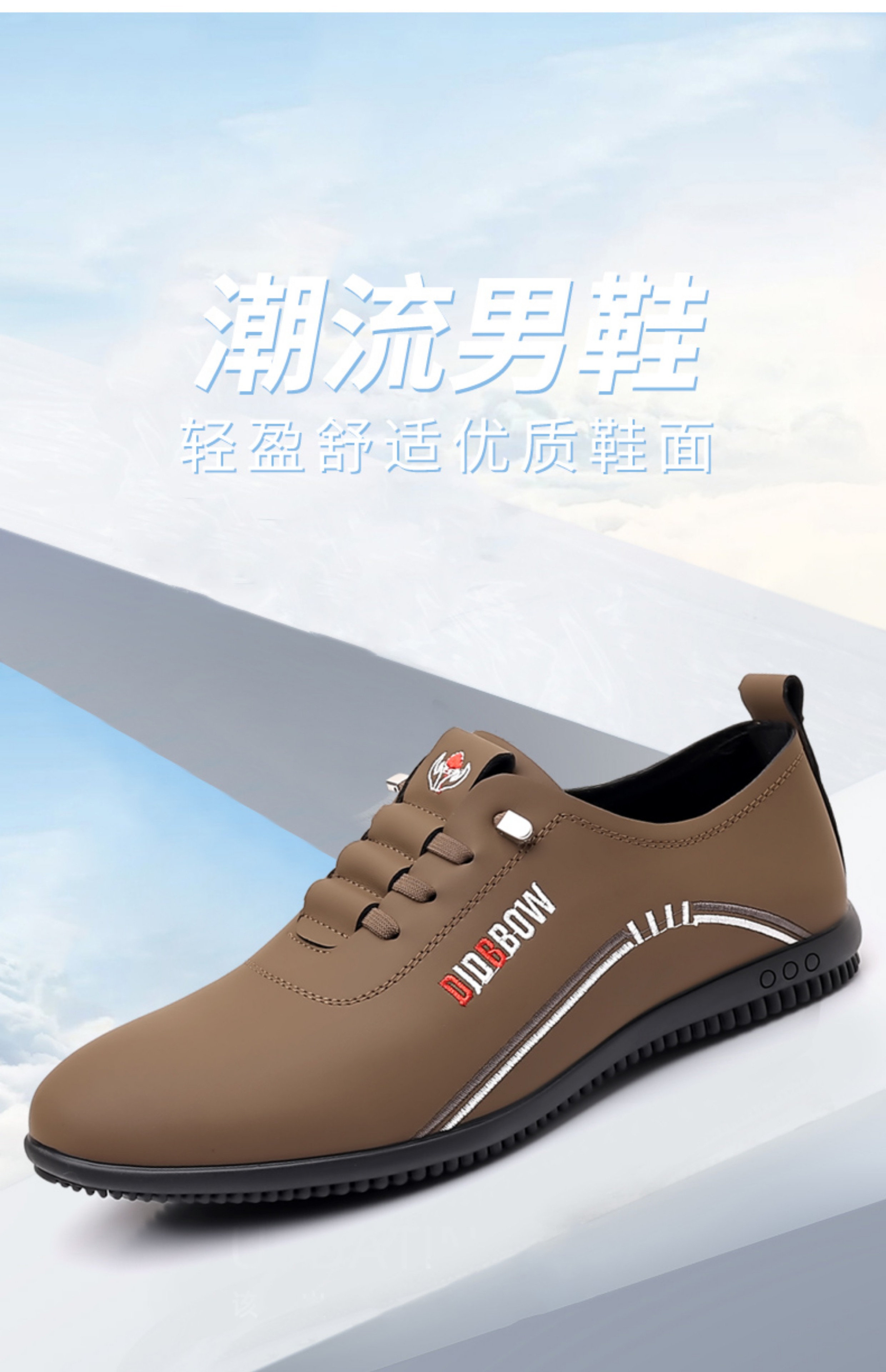 100%全牛皮星头啄木鸟男鞋2024男士真皮运动休闲透气软底驾车鞋男 6888棕色 42