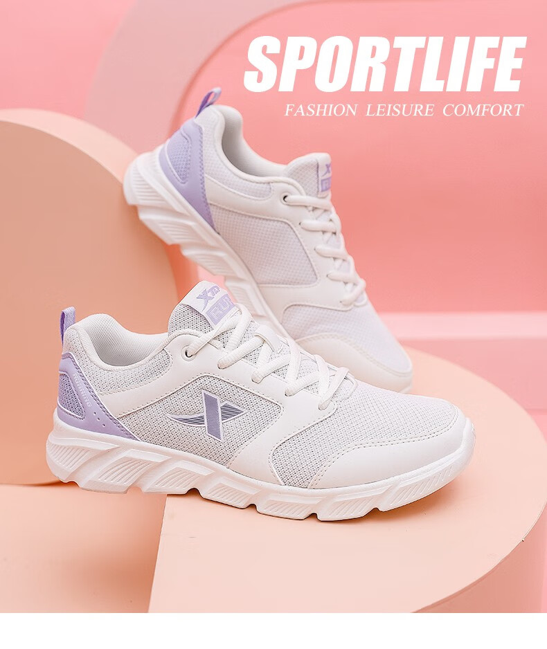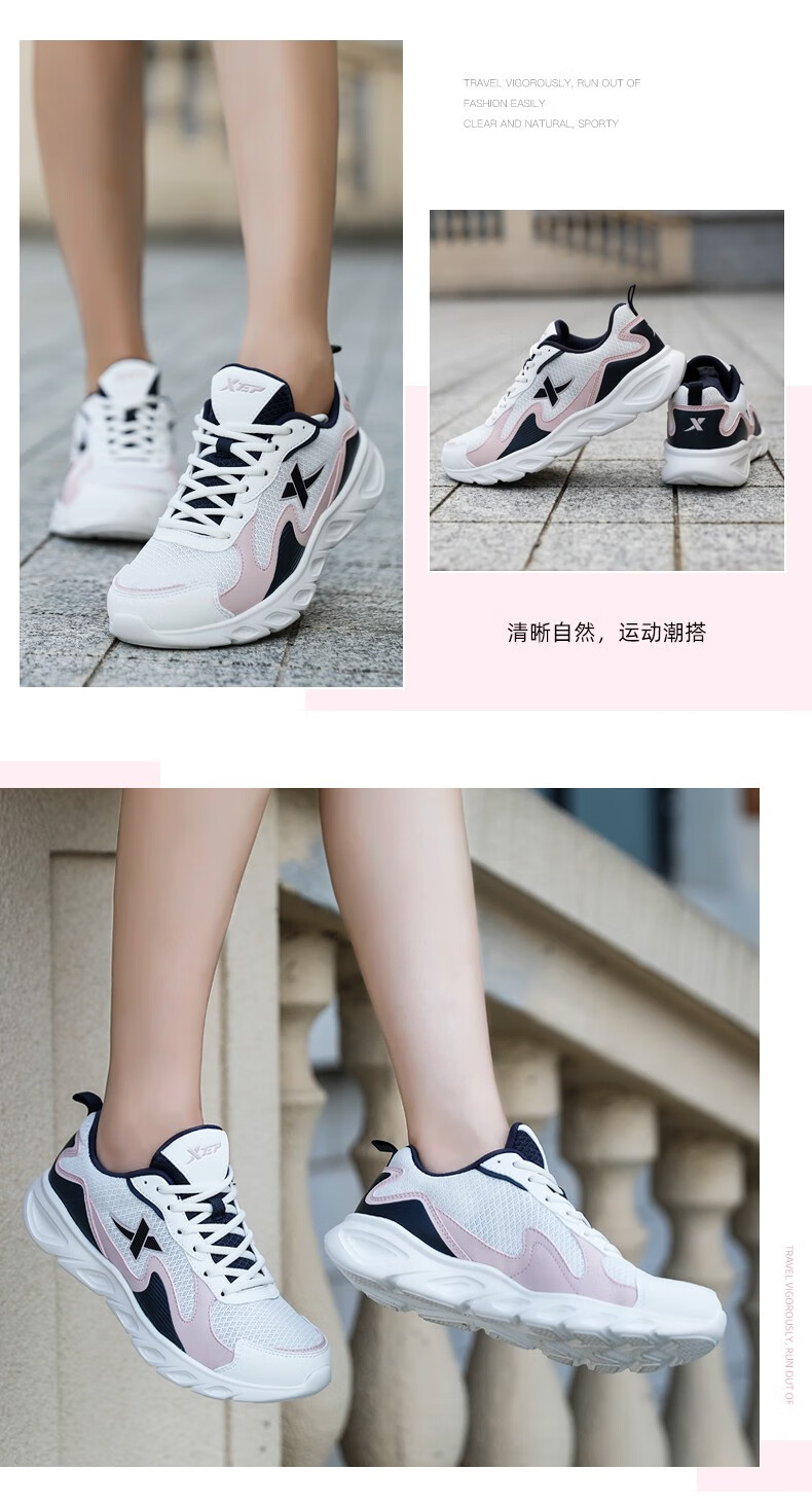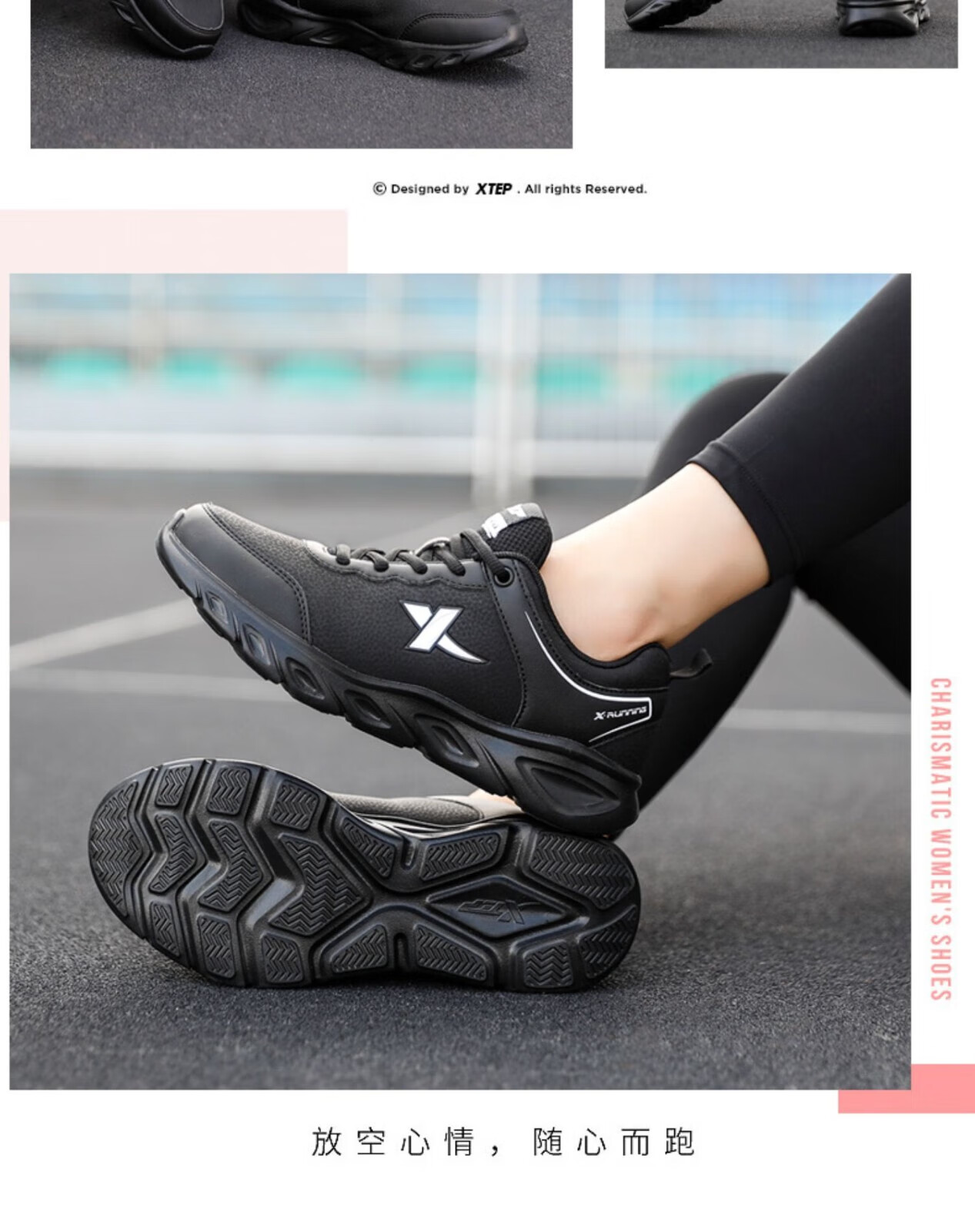 特步女鞋运动鞋秋冬款休闲鞋子轻便基础减震皮面防水软底跑步鞋女 6667黑粉红【推荐】 38