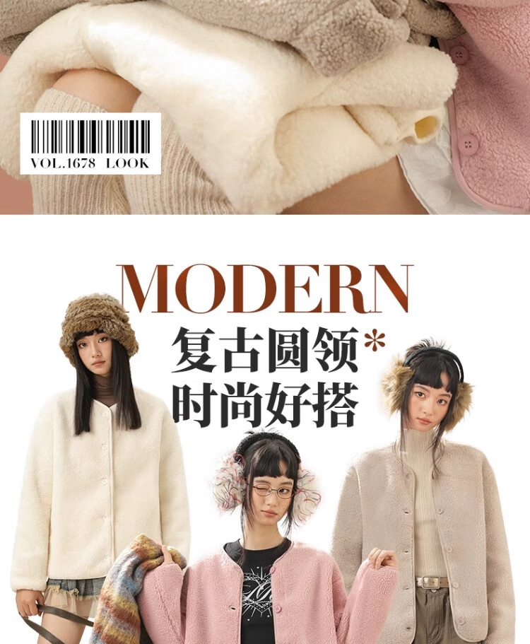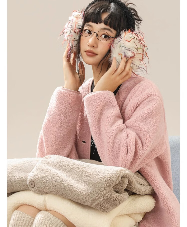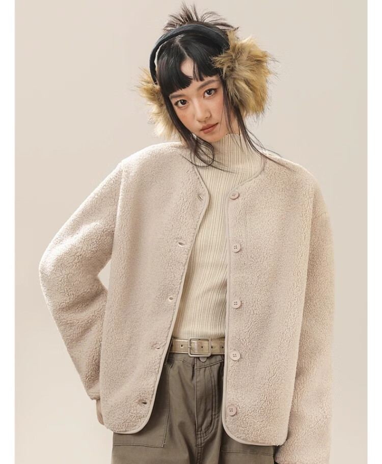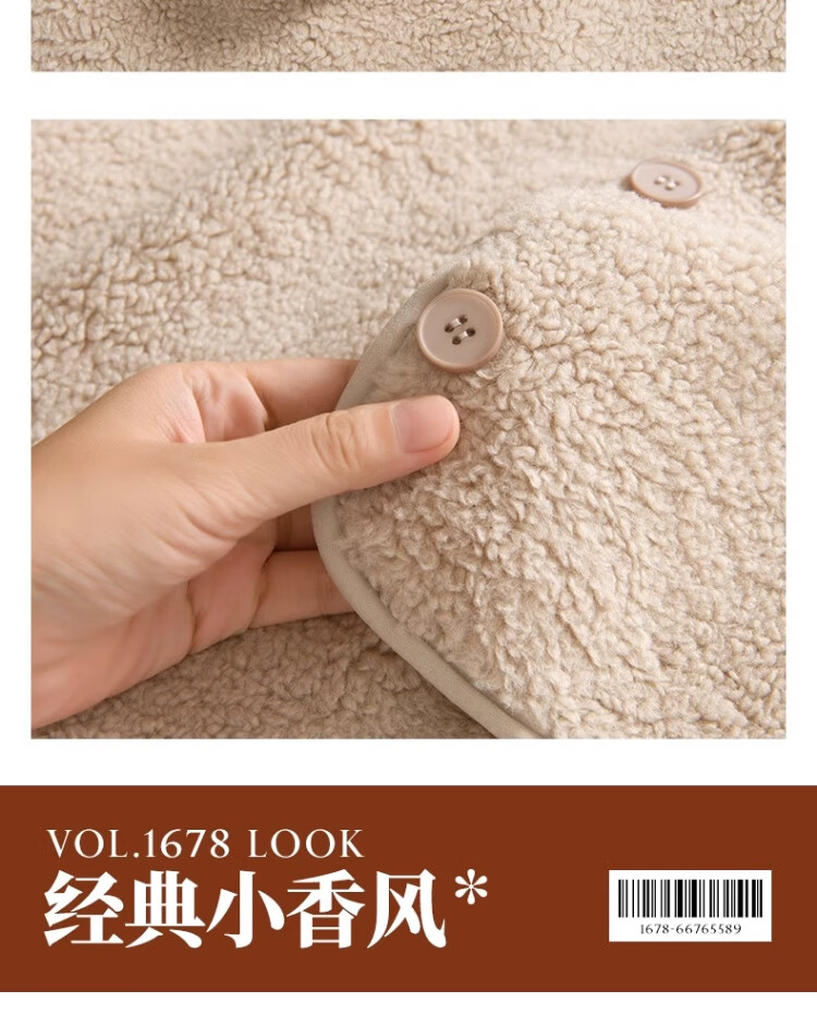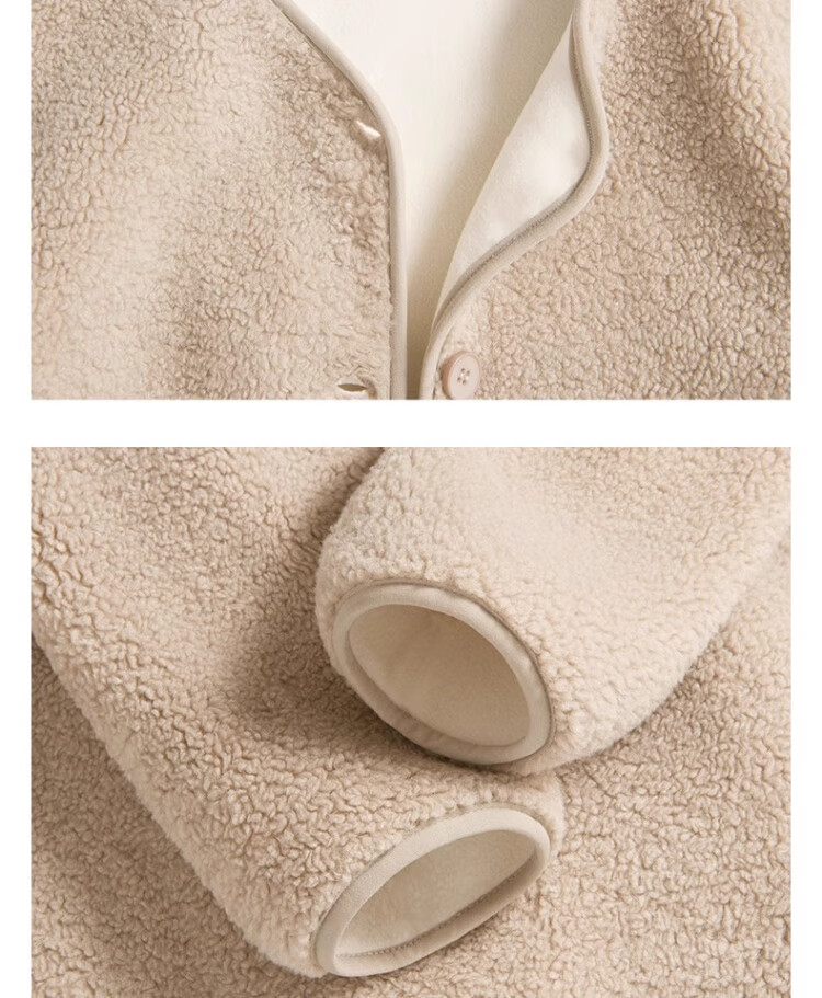 拉夏贝尔摇粒绒外套女秋冬季2024新款小香风加绒加厚保暖开衫棉服 驼色(纯色) 165/M(推荐105-125斤)