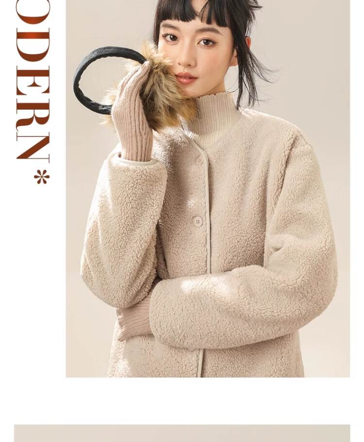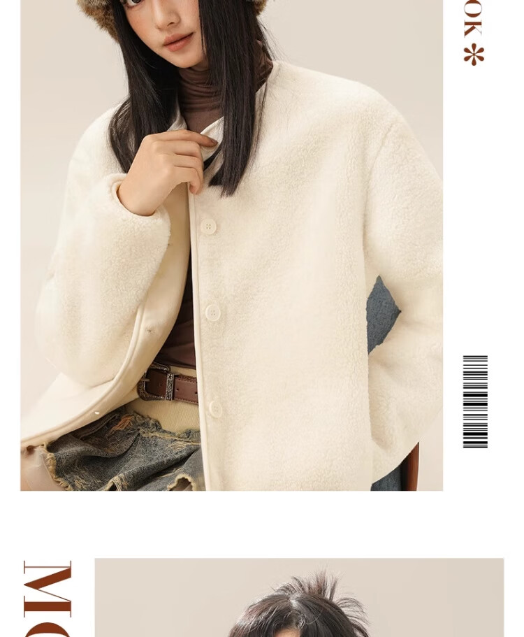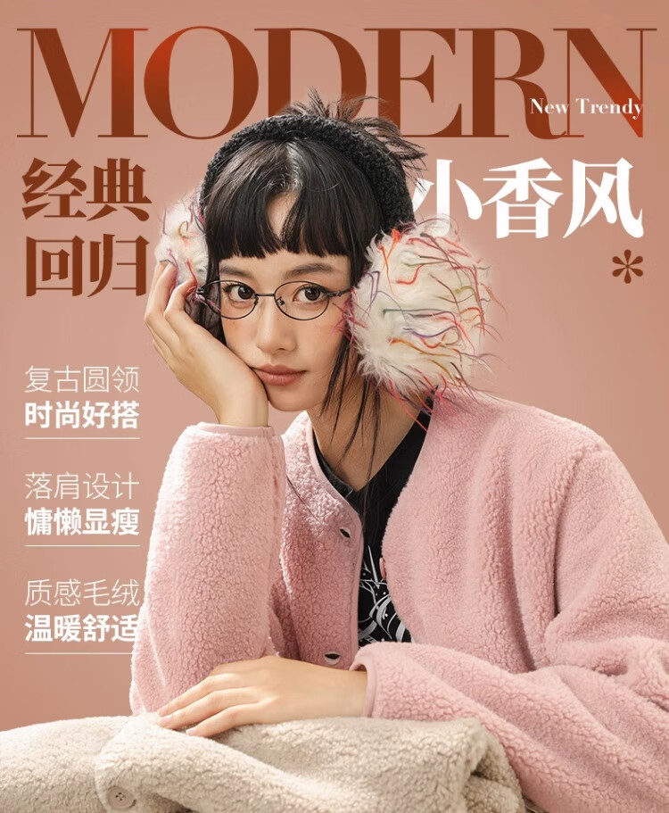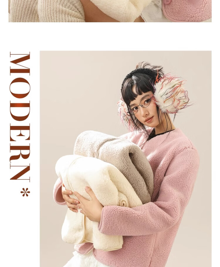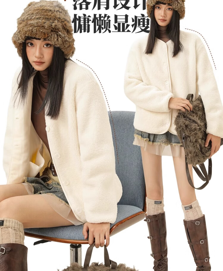 拉夏贝尔摇粒绒外套女秋冬季2024新款小香风加绒加厚保暖开衫棉服 驼色(纯色) 165/M(推荐105-125斤)
