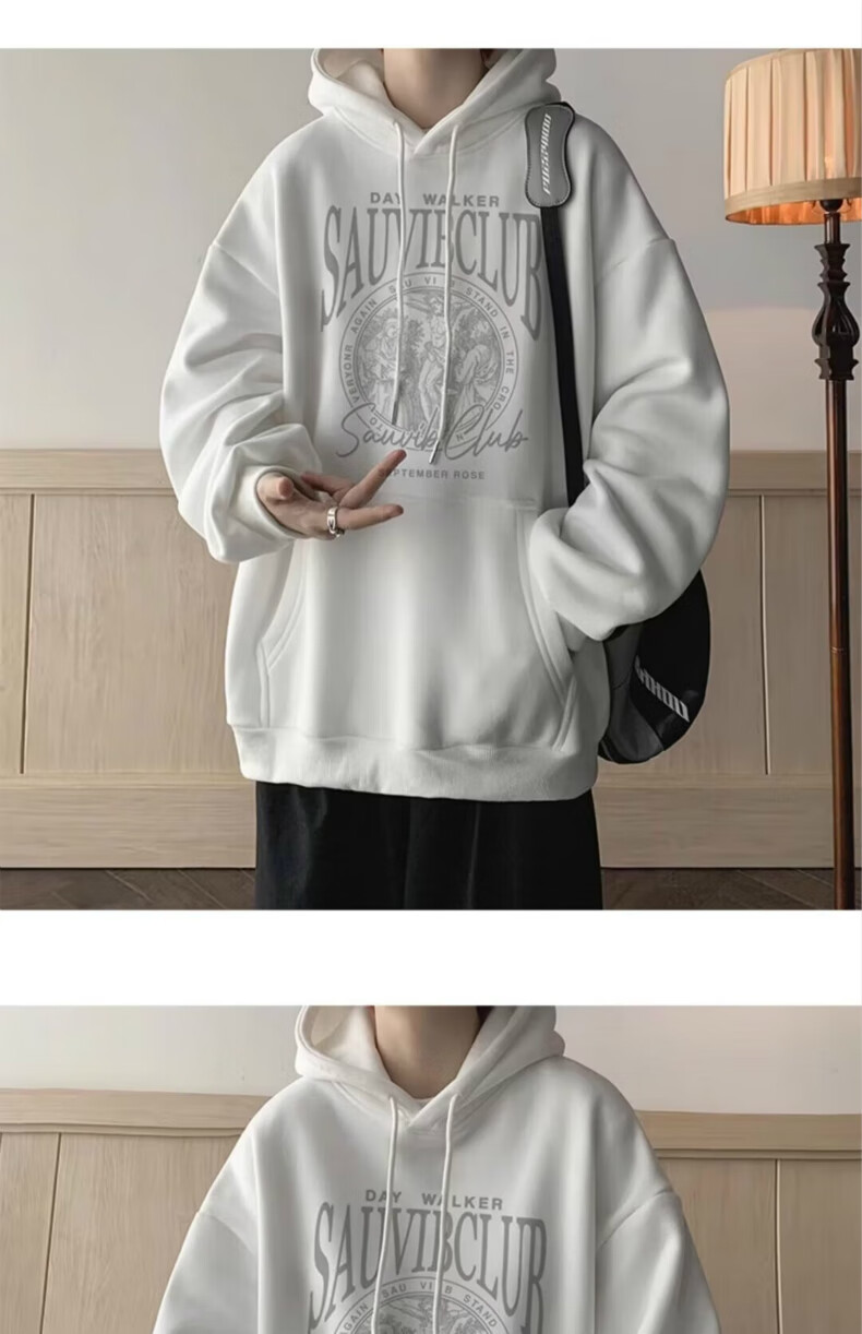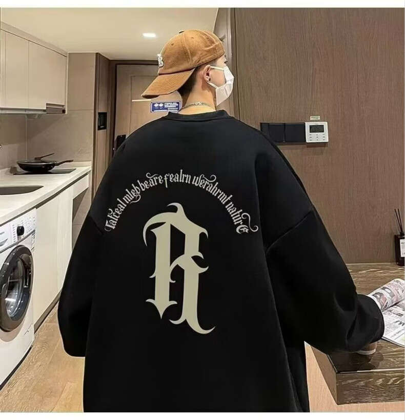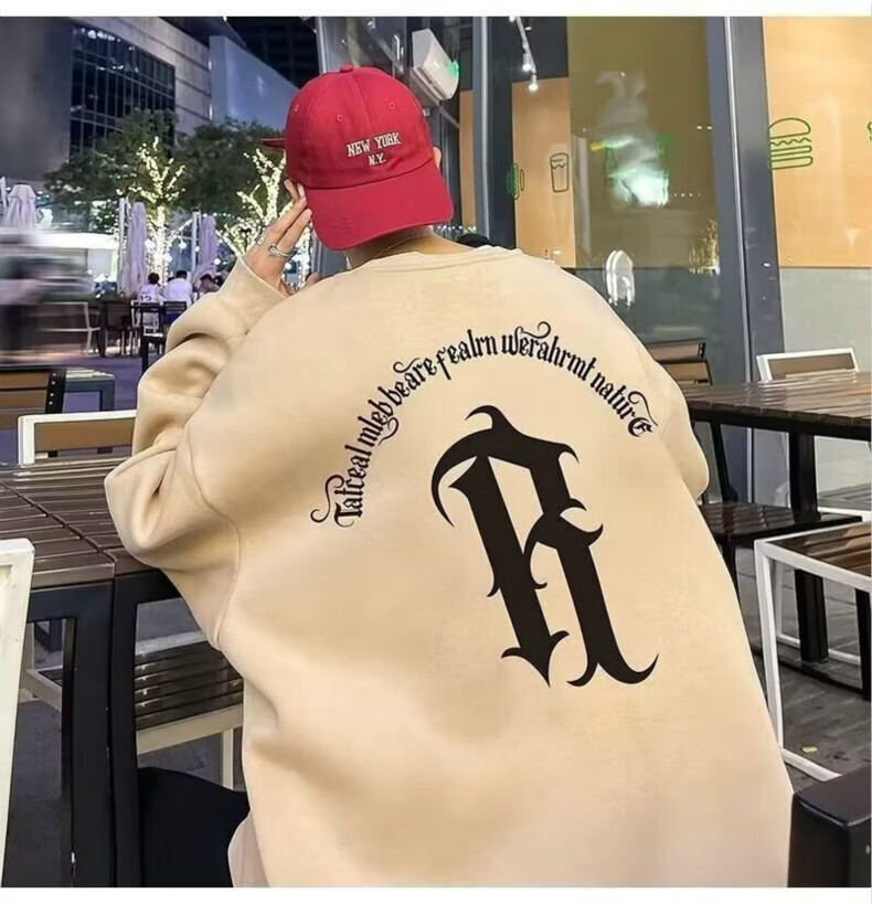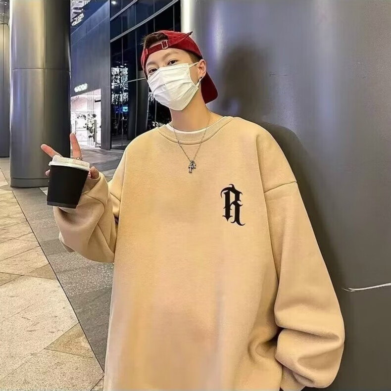 南极人卫衣男秋季美式复古男装宽松上衣长袖T恤冬季加绒加厚即墨衣服 224杏色【春秋款】 XL【建议体重125-145斤】