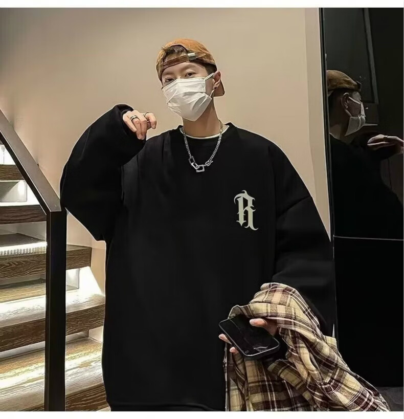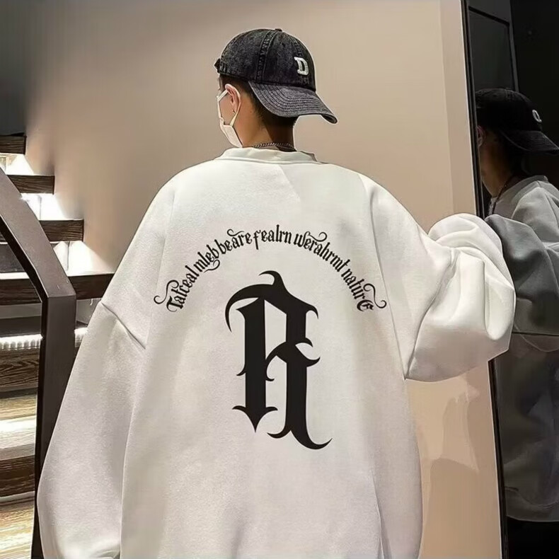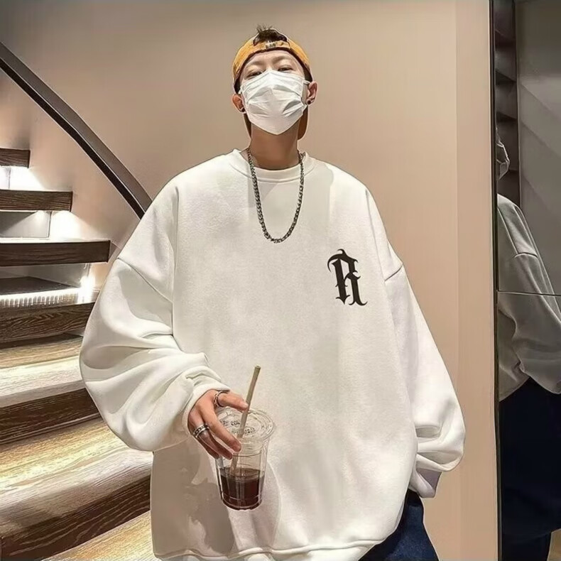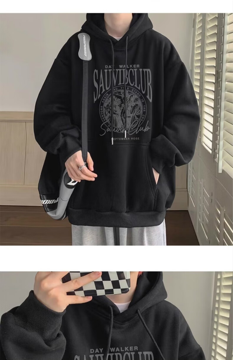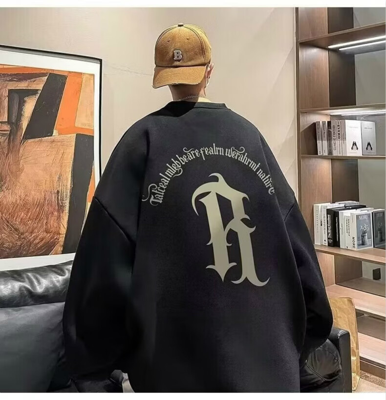 南极人卫衣男秋季美式复古男装宽松上衣长袖T恤冬季加绒加厚即墨衣服 224杏色【春秋款】 XL【建议体重125-145斤】