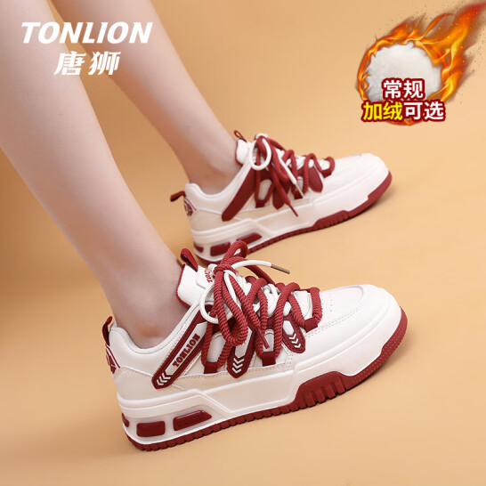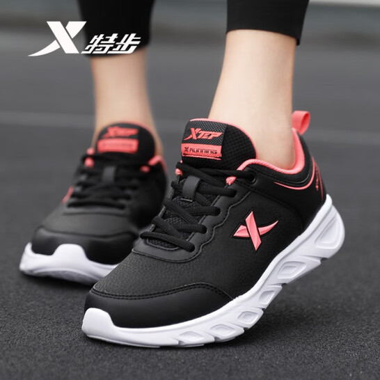 特步女鞋运动鞋秋冬款休闲鞋子轻便基础减震皮面防水软底跑步鞋女 6667黑粉红【推荐】 38